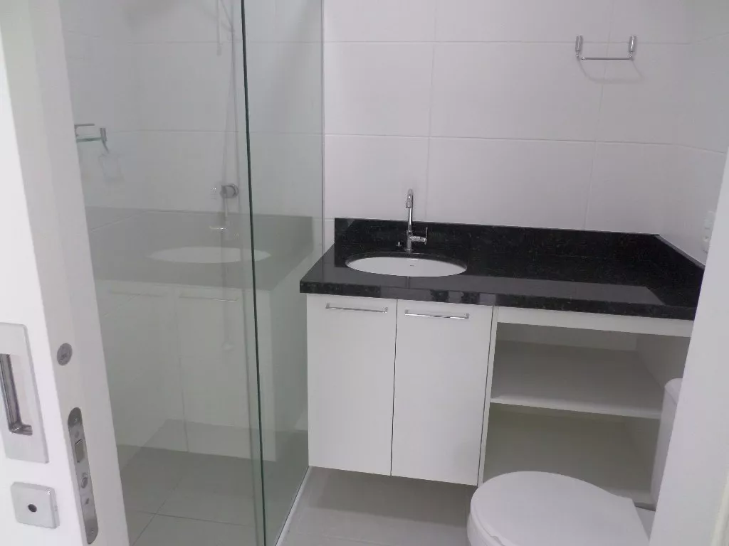 Cozinha e área de serviço com armários planejados, fogão cooktop, banheiro com armário planejado, box em vidro, uma vaga de garagem, piso em cerâmica, hidrômetro e gás individual.