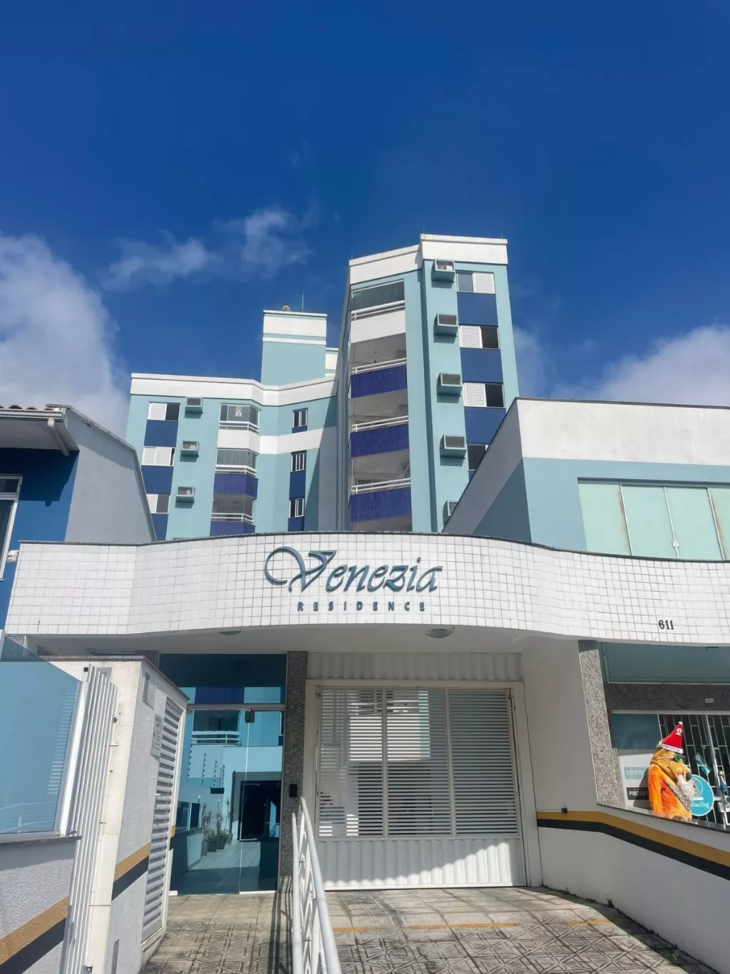 Condomínio com elevador, interfone, portão eletrônico e salão de festas.