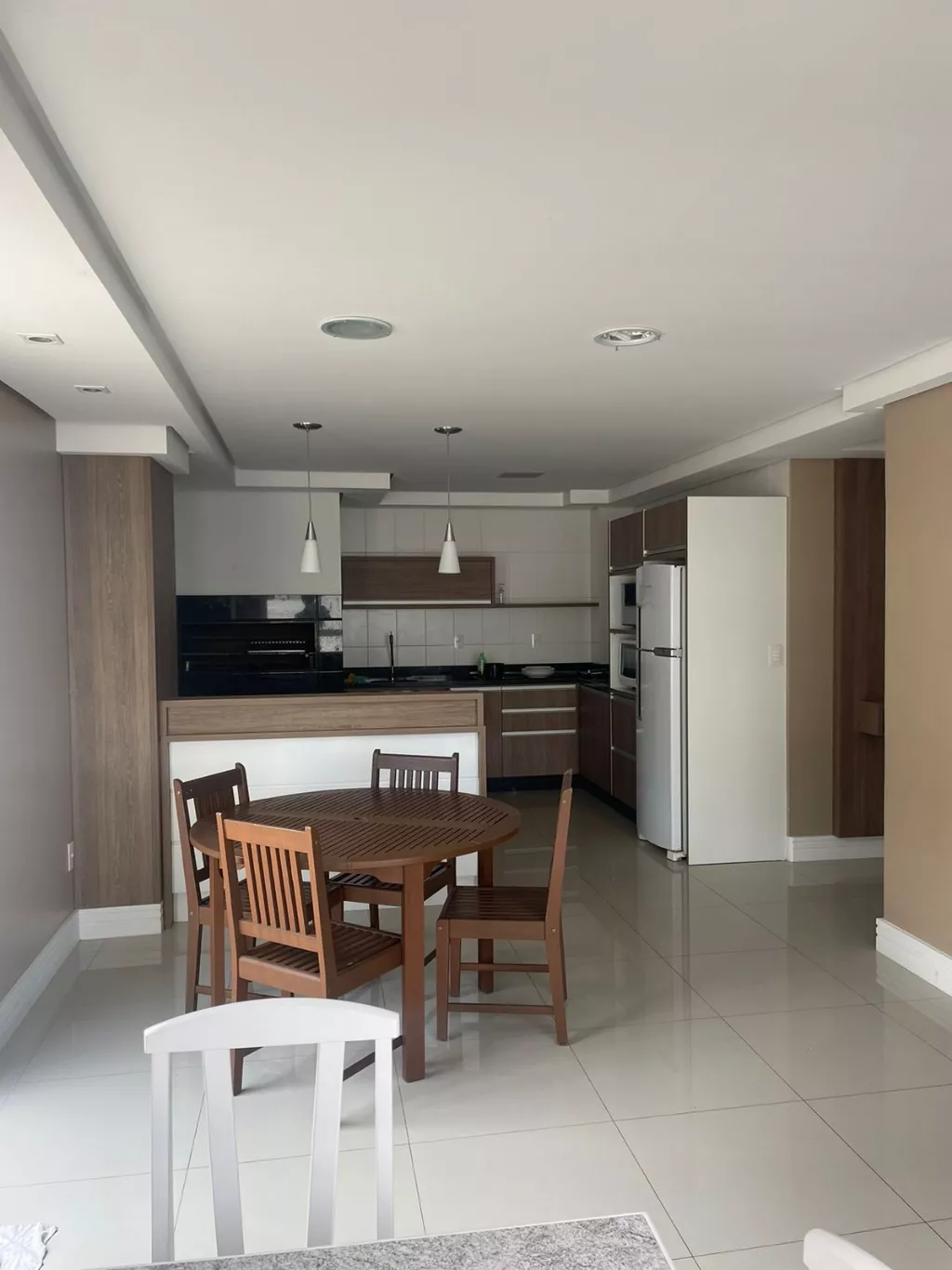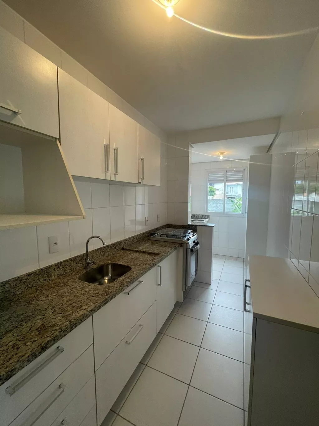 Apartamento localizado no bairro Carvoeira, linda vista para área verde, sala dois ambientes, sacada com churrasqueira, cozinha com armários e fogão, área de serviço com armário, dois dormitórios sendo uma suíte com ar condicionado, banheiros com armários e box blindex. 01 vaga de garagem livre e coberta.