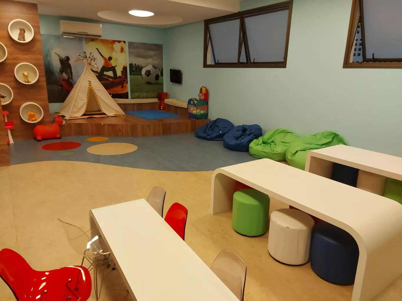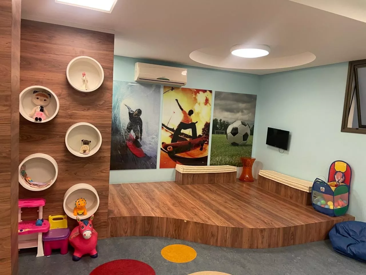 Condomínio oferece salão de festas com churrasqueira, circuito de tv, elevador, estacionamento para visitantes, brinquedoteca, parquinho e piscina.