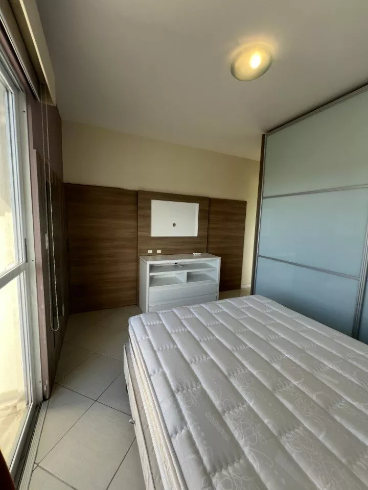 Cobertura com 02 dormitório sendo uma suite, ambos com cama, armário e ar condicionado, ampla sala para dois ambientes, cozinha com móveis planejados, fogão, geladeira, forno, banheiros com bancada em granito, box em vidro, área de serviço, área externa com churrasqueira. 01 vaga de garagem.