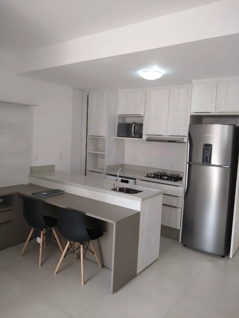 Cozinha completa microondas, geladeira, cooktop e máquina de lavar roupas lava e seca;