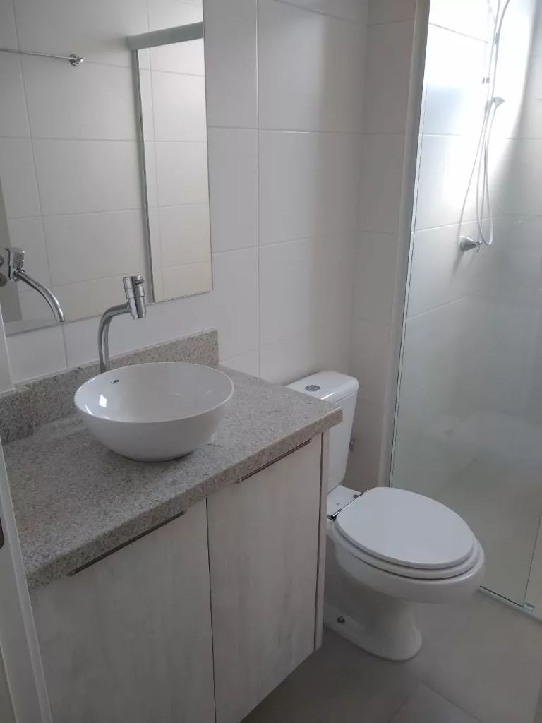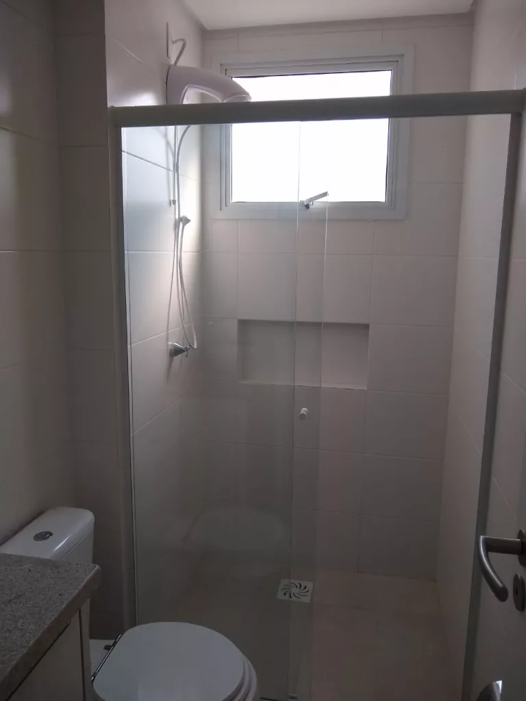 Banheiro com ventilação natural e box blindex.