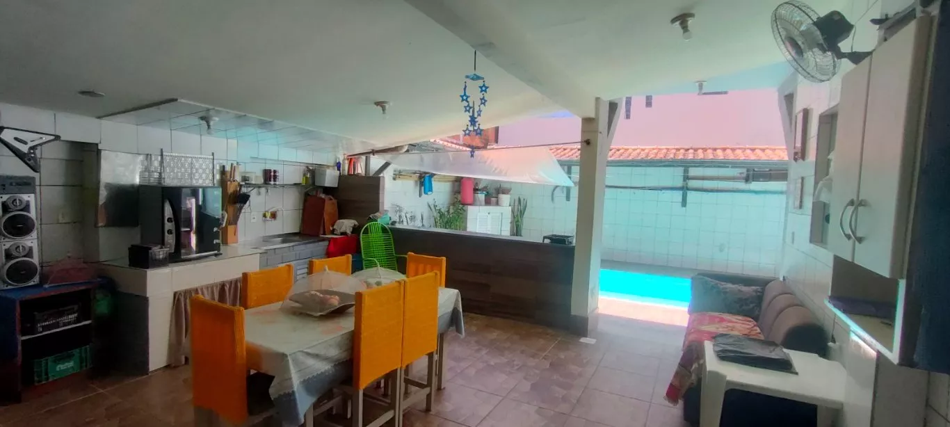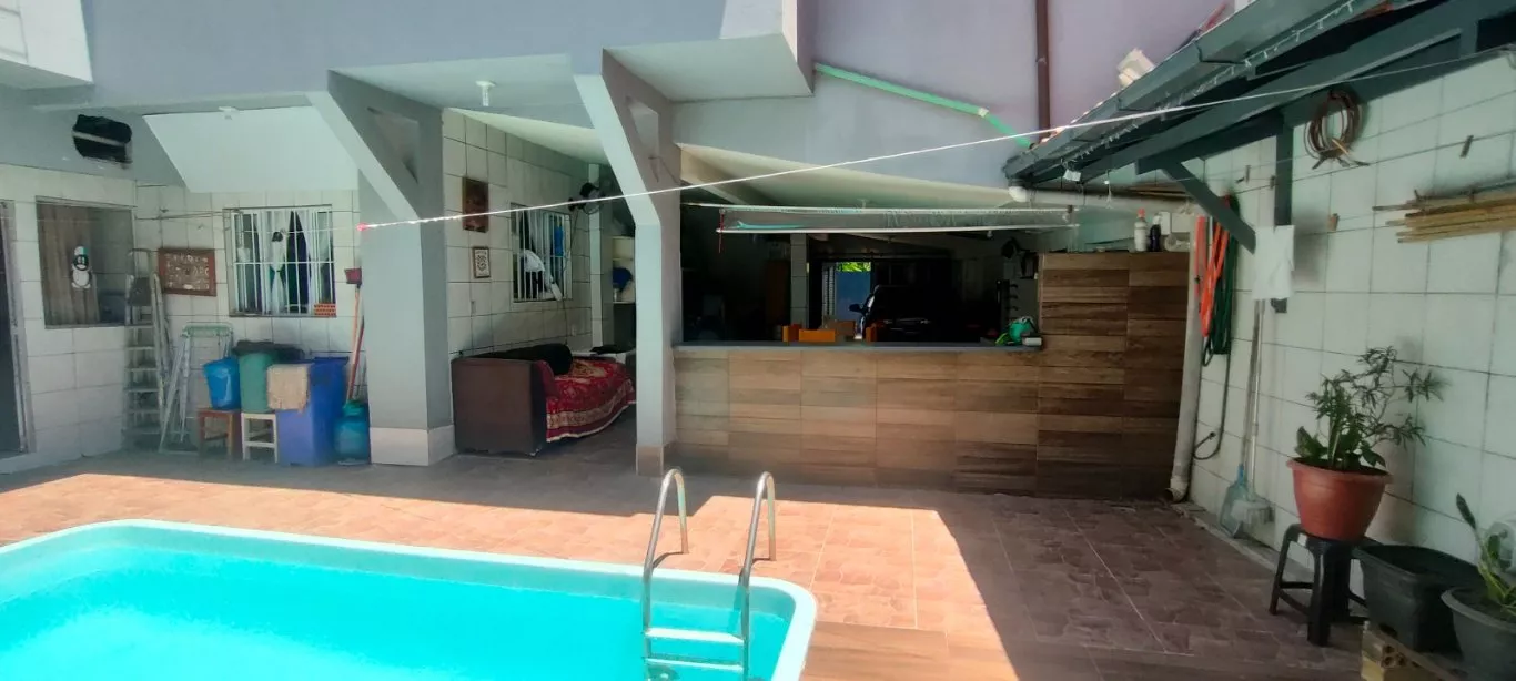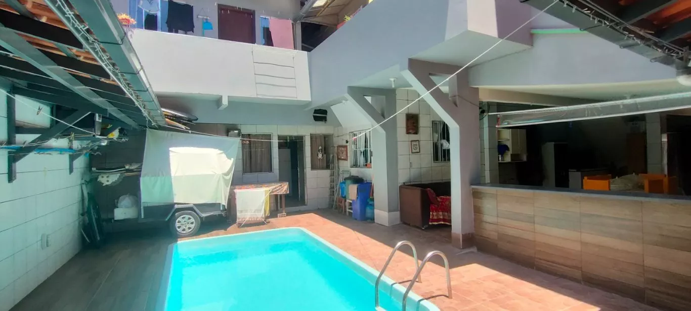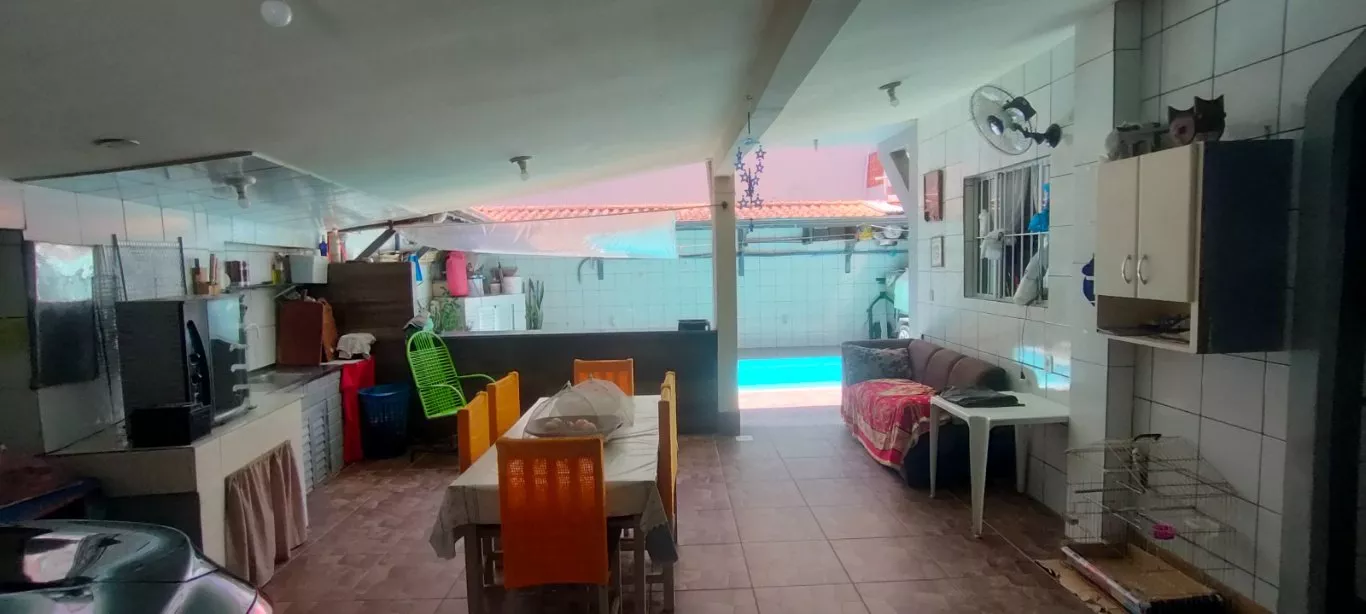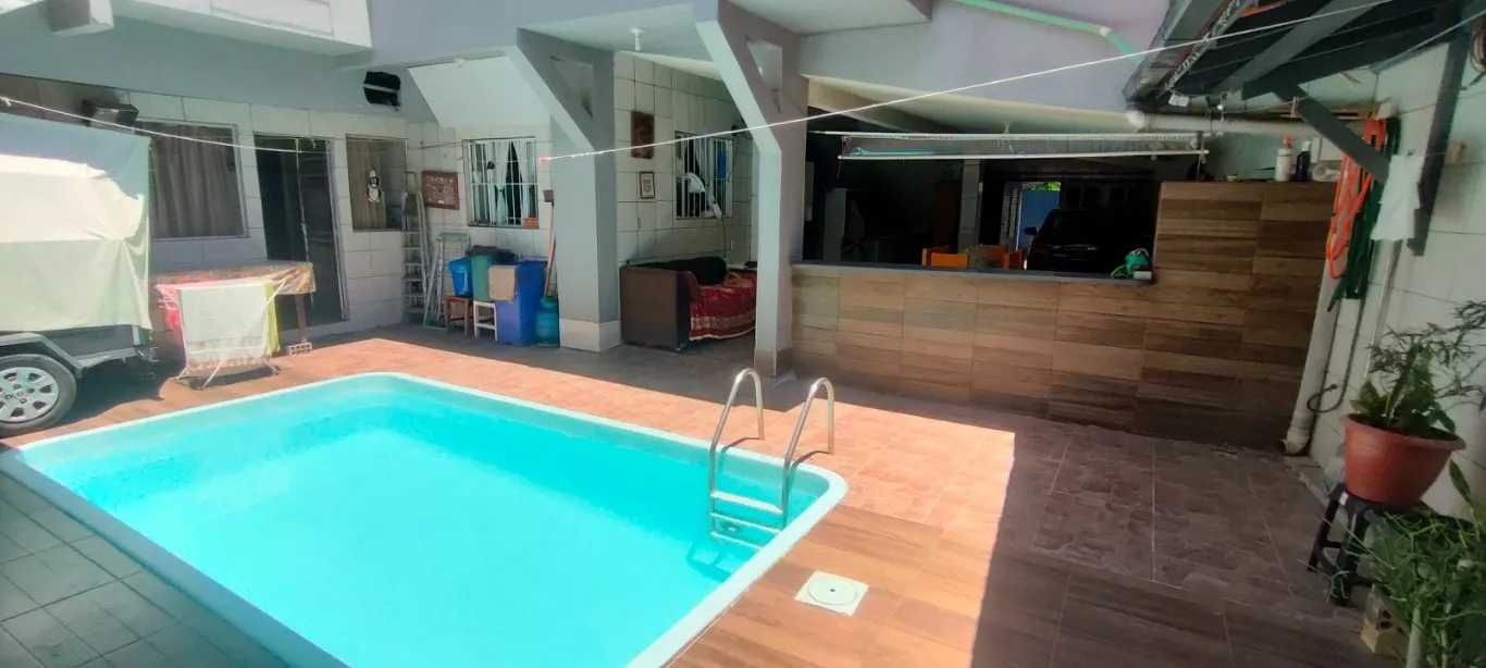 Casa ampla estilo pousada com 02 pavimentos; no térreo uma ampla residência com 3 quartos, 2 banheiros, cozinha e sala de estar, varanda coberta, área externa com piscina, garagem coberta para 2 carros.