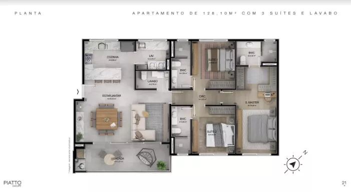 | Dormitórios: | (3) dormitório(s) sendo (3) suíte(s) | |