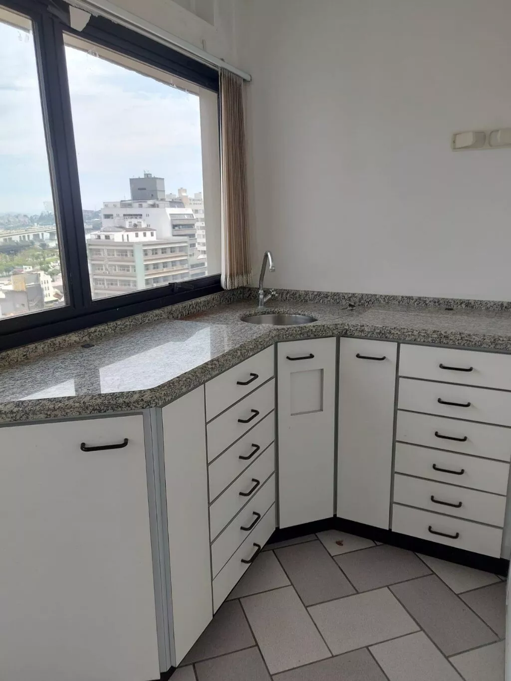 O condomínio conta com portaria 24hs, porteiro eletrônico, com 12 andares e 2 elevadores. Sala com 90 M² privativos com divisórias, sendo 3 salas, 1 cozinha, 1 bwc, 1 depósito para arquivos, ar condicionado, 8 andar e vista panorâmica.