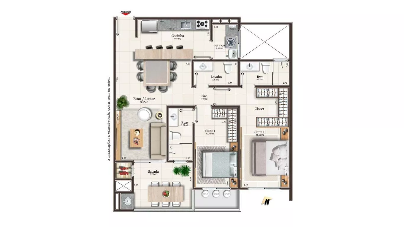 Possui 1 torre com 16 pavimentos e Apartamentos com 2 e 3 suítes e 2 coberturas.
