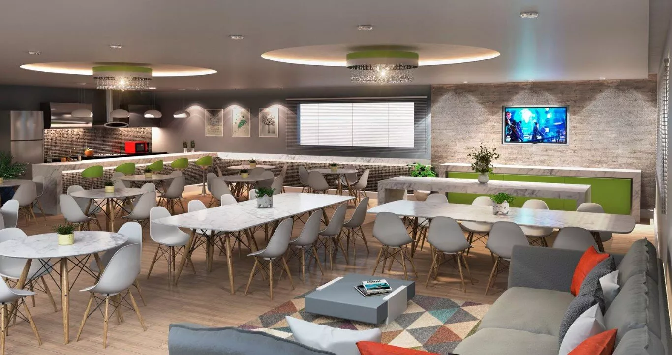 Possui 12 áreas de convívio e lazer, 151 vagas de garagem ,Gerador de emergência, Zeladoria e sala de condomínio.