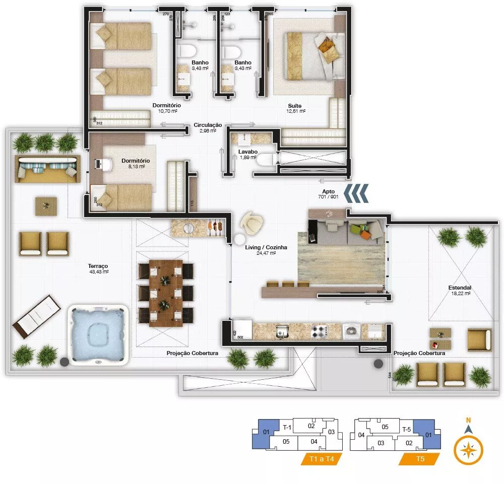 Torres 3, 4 e 5 com 6 pavimentos + cobertura.