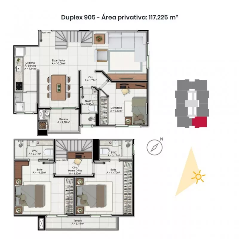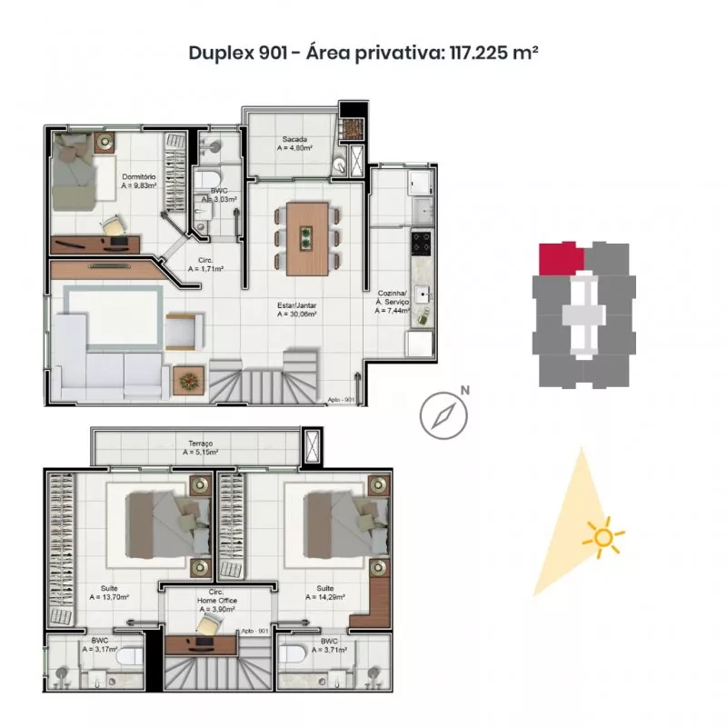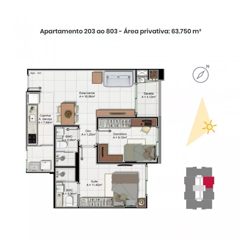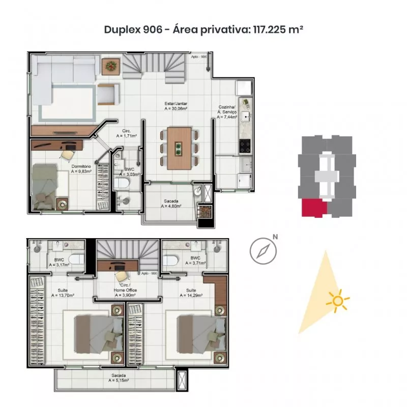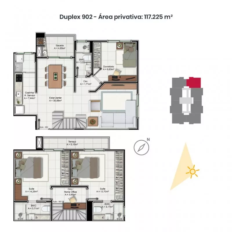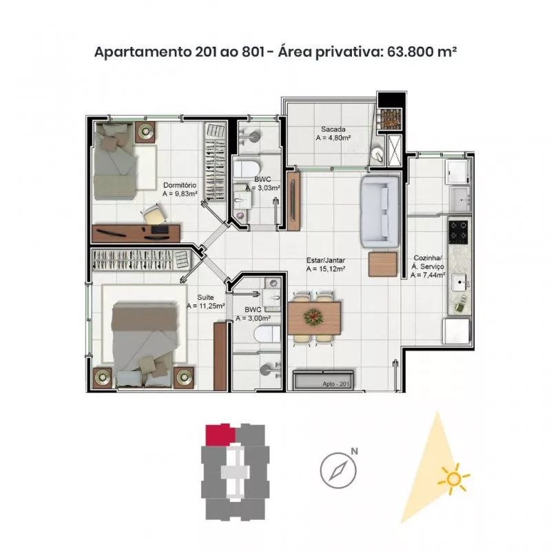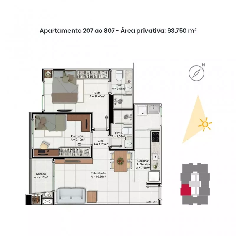Com apartamentos de 2 dormitórios e sótão com 3 suítes, oferecemos o lugar ideal para a família que procura qualidade de vida, conforto e segurança.