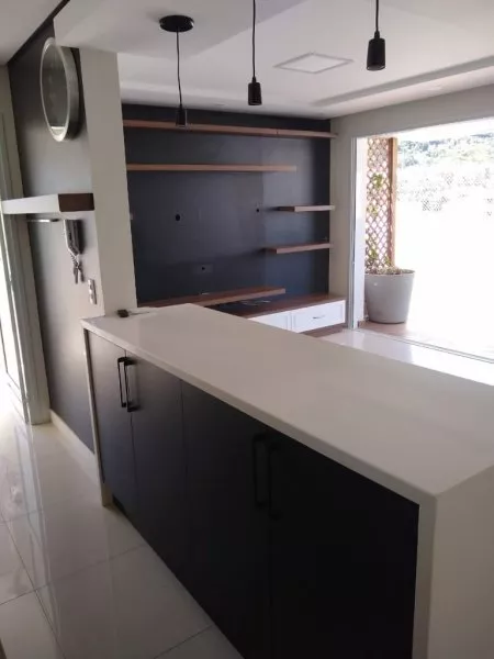 Imóvel todo planejado com móveis sob medida, possui 03 quartos sendo 1 suíte com closet, sala ampla com lavabo, cozinha americana com armarios embutidos, terraço com jacuzzi, garagem para dois carros mais hobby box.